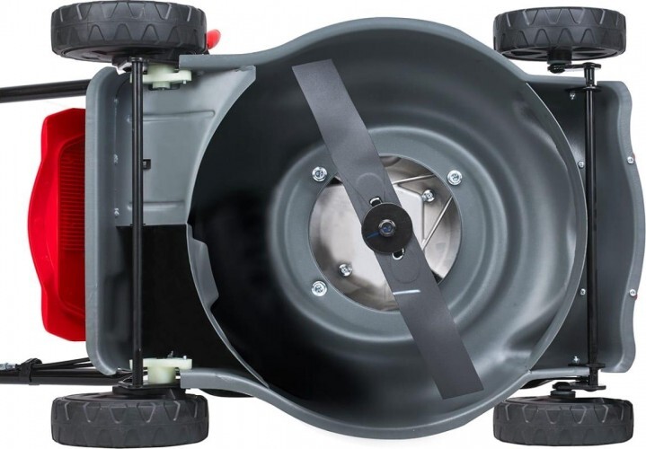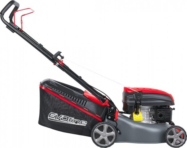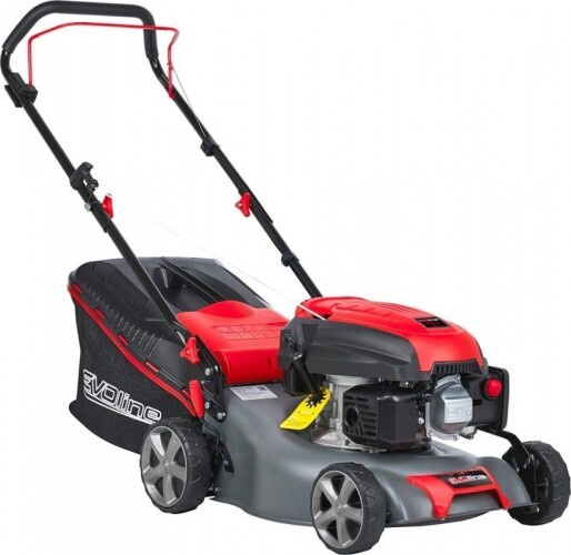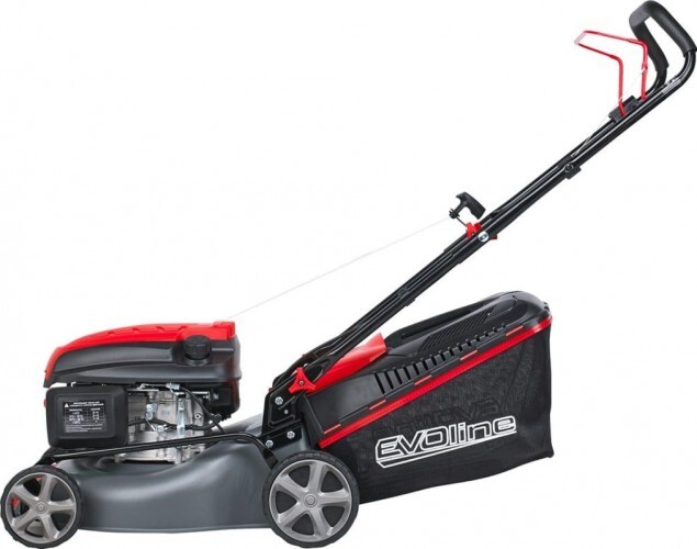 Газонокосилка бензиновая EVOline LMG 42 CP - имеет ширину кошения 42 см и металлическую деку. Двигатель косилки TREX Y145V OHV объемом 145 куб.см и мощностью 3,5 л.с.