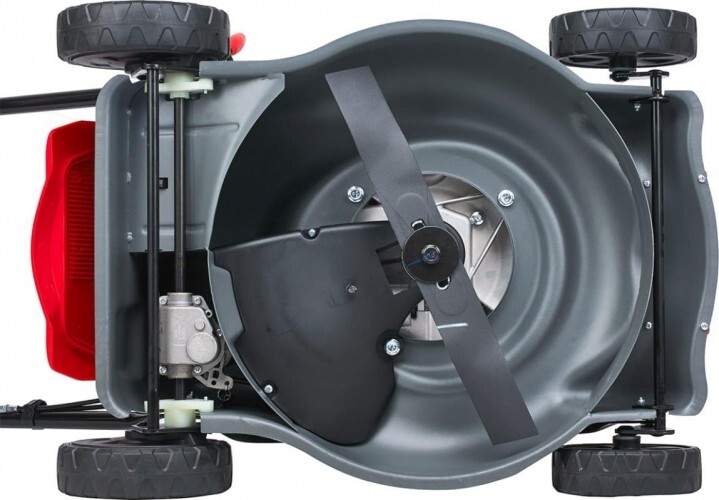 Бензокосилка EVOline LMG 42CP самоходная, может работать в 3 режимах кошения - сбор травы в травосборник, выброс скошенной травы назад и мульчирование. Её травосборник имеет объем 45 литров, а высоту кошения можно регулировать в диапазоне от 25 до 75 мм (6 положений).