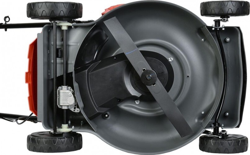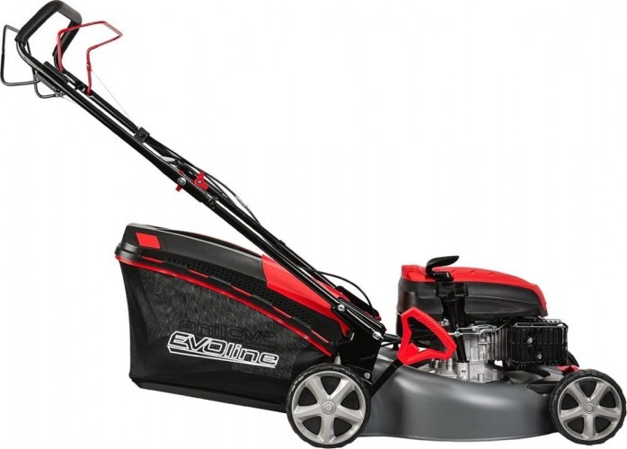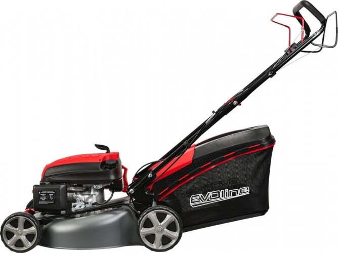 Газонокосилка бензиновая EVOline LMG 46 CS - имеет ширину кошения 46 см и металлическую деку. Двигатель косилки TREX Y170V OHV объемом 170 куб.см и мощностью 3,9 л.с.