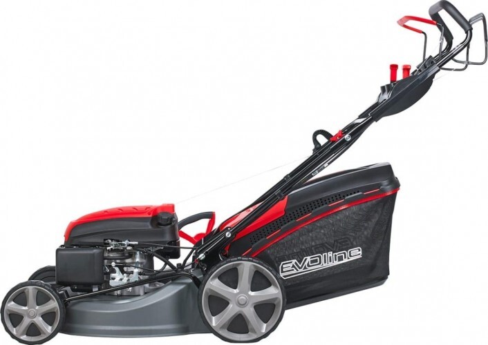 Бензокосилка EVOline LMG 53 CV самоходная, трансмисия с динамическим вариатором (4 скорости), газонокосилка может работать в 4 режимах кошения - сбор травы в травосборник, выброс скошенной травы назад, мульчирование и выброс в сторону. Её травосборник имеет объем 70 литров, а высоту кошения можно регулировать в диапазоне от 25 до 75 мм (6 положений).