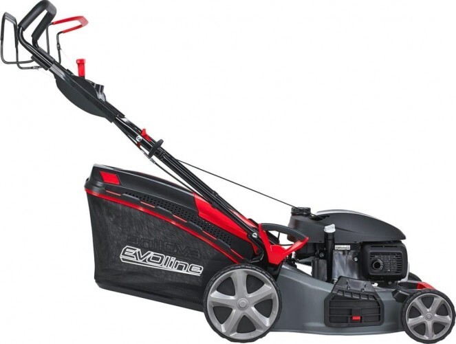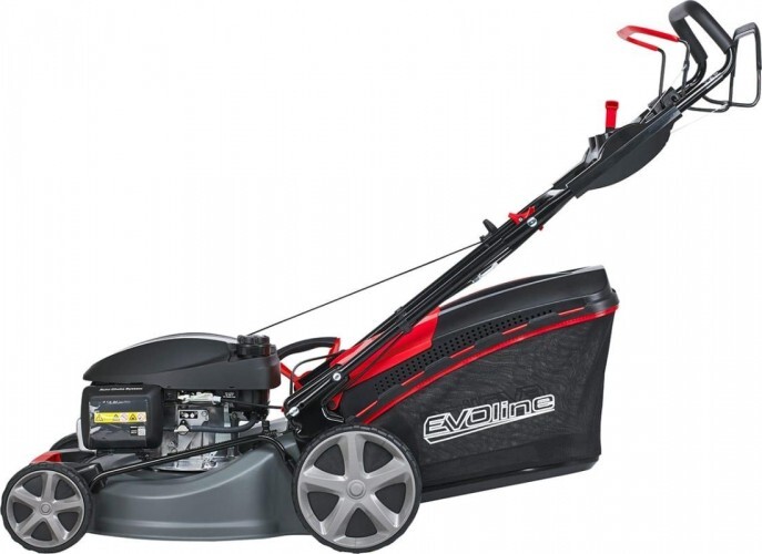 Бензокосилка EVOline LMG 53 CVH самоходная, трансмисия с динамическим вариатором (4 скорости), газонокосилка может работать в 4 режимах кошения - сбор травы в травосборник, выброс скошенной травы назад, мульчирование и выброс в сторону. Её травосборник имеет объем 70 литров, а высоту кошения можно регулировать в диапазоне от 25 до 75 мм (6 положений).