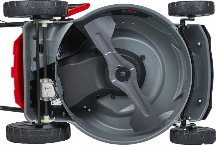 Газонокосилка бензиновая EVOline LMG 53 CVH - имеет ширину кошения 53 см и металлическую деку. Двигатель косилки HONDA GCV200 объемом 201 куб.см и мощностью 5,6 л.с.