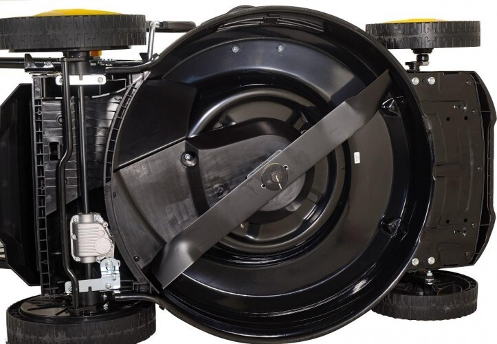 Высота среза имеет 7 уровней центральной регулировки. Это позволяет подобрать оптимальную высоту скашивания от 25 до 75 мм. Срез шириной 530 мм обеспечивает быструю обработку участка большой площади. Функция мульчирования позволяет измельчать скошенную траву. В качестве топлива используется бензин АИ-92. Вместительный топливный бак объемом 1,2 л обеспечивает длительность непрерывной работы.