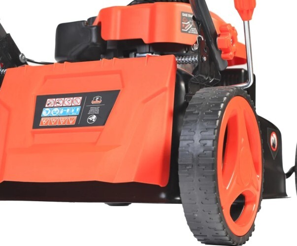 упрощает хранение и транспортировку бензиновой газонокосилки