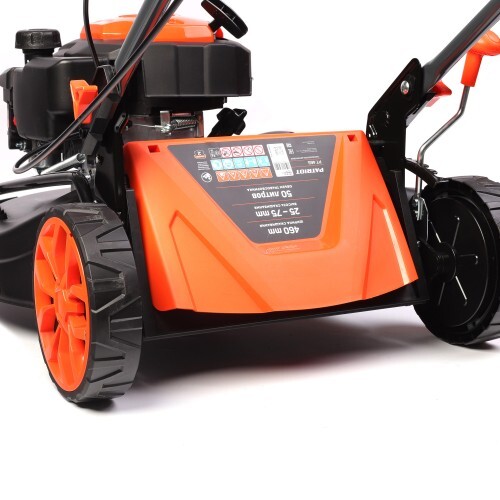 Мощная бензиновая газонокосилка РТ 46S The One с изменяемой высотой скашивания предназначена для срезания и сбора травы на ровной площади малых и средних приусадебных участках. Газонокосилку отличает легкий запуск, высокая производительность и простота в обслуживании. Складная рукоятка, съёмный травосборник и компактный размер позволяют легко транспортировать и хранить газонокосилку. Для облегчения работы газонокосилка оснащена приводом на колеса. Газонокосилка оснащена боковым выбросом, заглушкой для мульчирования, штуцером для промывки водой.