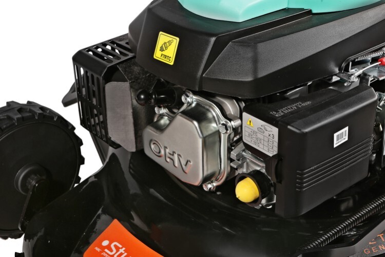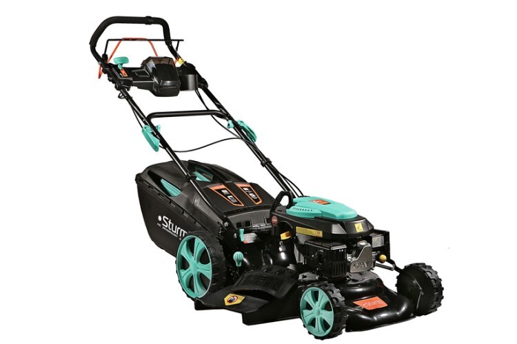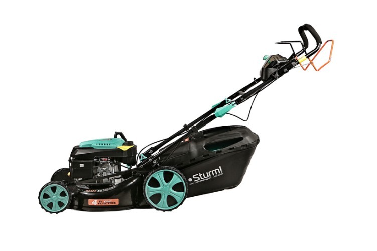 Газонокосилка бензиновая STURM PL4714SV самоходная 4 в 1 с мощным двигателем 5 л. с. и изменяемой высотой скашивания предназначена для срезания и сбора травы на изменяющемся рельефе. .Газонокосилка работает в четырех режимах: боковой выброс травы, задний выброс травы, режим мульчирования и сбор травы с травосборник. Большие задние колеса обеспечивают газонокосилке превосходную маневренность. Установленная трансмиссия от мирового бренда GENERAL TRANSMISSIONS обеспечивает самостоятельный привод задних колес и снимает физическую нагрузку с оператора. Управление оборотами двигателя осуществляется с помощью удобного рычага на верхней рукоятке, позволяя настраивать нужную скорость движения. Центральная регулировка высоты кошения — быстрая и удобная настройка с помощью одного рычага облегчает обработку газонов с изменяющимся рельефом. Ударопрочный вместительный 60-литровый травосборник создает максимальное удобство в работе и экономит время.