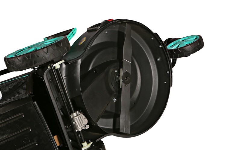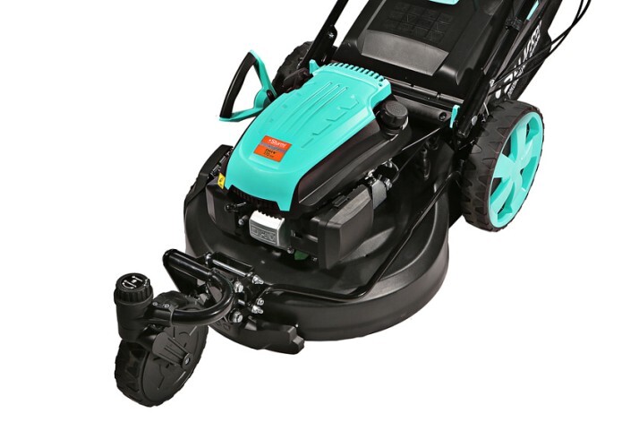 Самоходная трансмиссия с приводом на задние колеса и функцией регулировки скорости, обеспечивает легкое и комфортное управление газонокосилкой.