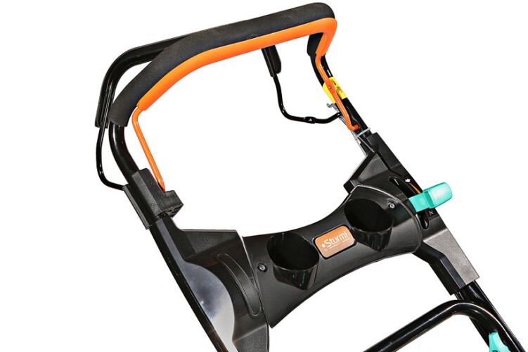 Для более компактного хранения или при транспортировке рукоятка газонокосилки легко складывается. Тем самым экономит пространство.