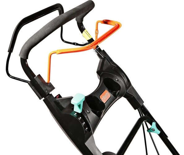 Для более компактного хранения или при транспортировке рукоятка газонокосилки легко складывается. Тем самым экономит пространство.