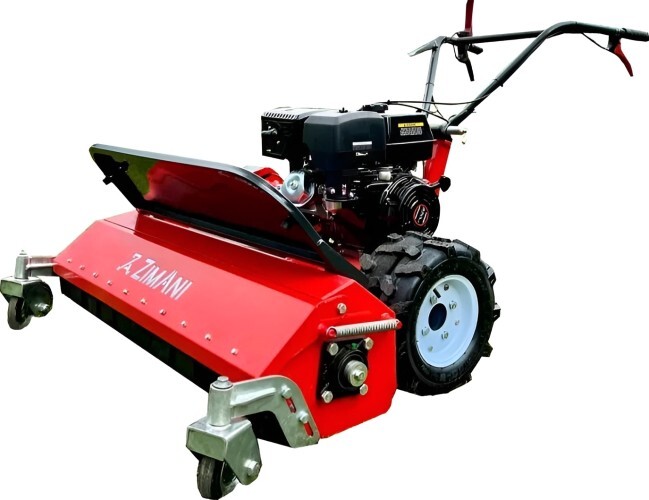 Цилиндрический барабан, оснащенный ножами специальной формы в сочетании с двигателем 15 л.с. позволяет косить бурьян и даже небольшую древесную поросль, а может ухаживать и за ровным газоном.