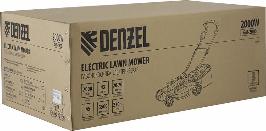 Электрическая газонокосилка Denzel GM-2000 — маневренная и простая в управлении техника, обеспечивающая ширину скашивания 43 см. Быстро справляется с работой на площади примерно 8 соток, помогает оформлять аккуратный газон в саду и на дачном участке. Косилка не требует особых навыков и сложного технического обслуживания — не нужно менять масло и свечи, заливать и сливать бензин, долго заводить и прогревать двигатель.