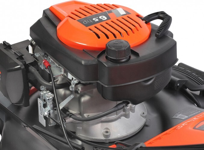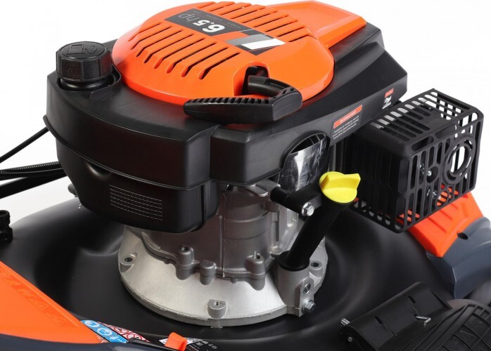 Для облегчения работы газонокосилка оснащена приводом на колеса.