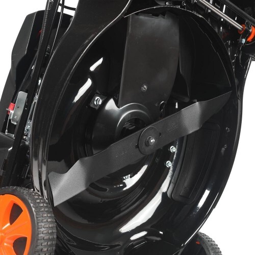 Корпус газонокосилки выполнен из прочной стали, устойчивой к коррозии и механическим повреждениям. Широкая дека оснащена штуцером для подключения шланга — подача воды позволяет быстро и удобно очистить внутреннюю часть корпуса после работы. Это значительно экономит время на обслуживание.