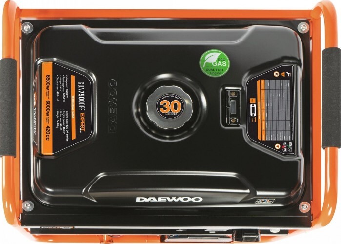 Бензиновый генератор DAEWOO GDA 7500DFE представляет собой устройство для питания электроприборов мощностью до 6.5 кВт в условиях временного или постоянного отсутствия электричества. На панели управления имеются клеммы 12 В для подзарядки автомобильного аккумулятора. Модель имеет информативный дисплей, на котором отображаются все необходимые параметры работы. Предоставляется возможность оборудовать прибор пневматическими колесами и рукоятками для удобства в транспортировке (опция). Вместительный топливный бак объемом 25 литров способствует непрерывной работе генератора без дозаправки в течение 13 часов (при нагрузке 50%).