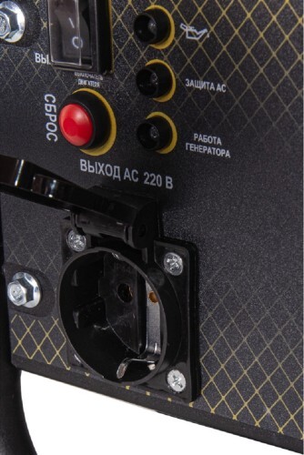 Генератор запускается от ручного стартера, двигатель четырёхтактный одноцилиндровый бензиновый с системой воздушного охлаждения. Отличается низким уровнем потребления топлива — 375 г/кВтч. Объём бензобака равен 2 л, что гарантирует продолжительную работу без частых дозаправок. Смазочная система, рассчитанная на 350 мл, использует моторное масло типа SAE 10W-40.