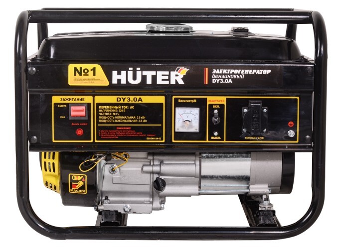 Электрогенератор (бензогенератор) - электрическая машина, предназначенная для автономного электроснабжения. В качестве первичного двигателя используется четырёхтактный карбюраторный двигатель, топливом для которого является неэтилированный бензин.Электрогенератор предназначен для получения электроэнергии в тех местах, где отсутствует магистральное электроснабжение. Это касается, как частных домов, где генераторы могут использоваться в качестве резервного источника питания, так и различных участков работ, где нужно электропитание для оборудования и проведения работ. Электрогенераторы HUTER много лет являются лидерами на российском рынке. Генераторы отличаются высоким качеством и надёжностью.