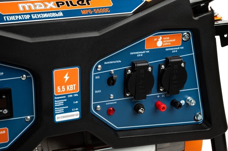 Генератор бензиновый MPG-5500C используется для электропитания приборов с общей потребляемой мощностью до 5,5 кВт в местах с отсутствием стационарной электросети. Предусмотрена индикация уровня масла и топлива для своевременной дозаправки устройства. При коротком замыкании, подача тока отключается автоматически. Металлическая рама защищает внутренние элементы от ударов.