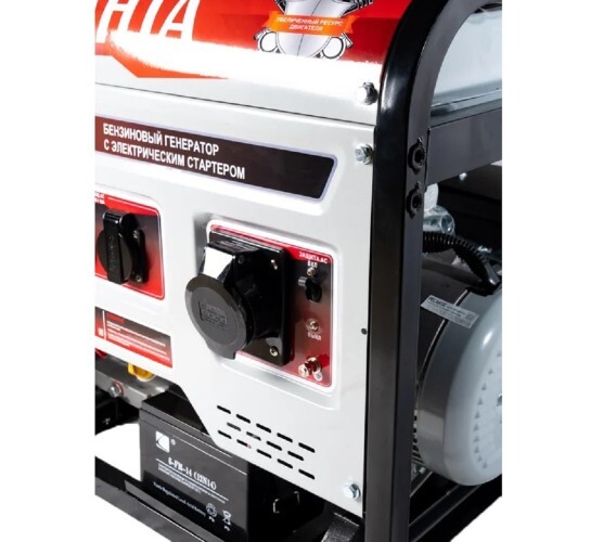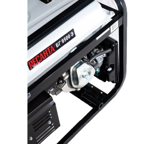 Электрогенератор Ресанта БГ 9500 Э предназначен для автономного электроснабжения потребителей бытового назначения. Электрогенератор бензиновый однофазный, выходная мощность 7500 Вт, выходное напряжение 220 Вольт. В качестве первичного источника используется карбюраторный двигатель, топливом для которого является неэтилированный бензин. Так же генератор оснащен выходом постоянного тока (12В), предназначенным для зарядки аккумуляторных батарей. Электрогенератор БГ 9500 Э имеет номинальную мощность 7,5 кВт, данной мощности хватает, чтобы питать отдельные потребители, или несколько потребителей. Полная (сумма активной и реактивной) мощность всех подключаемых потребителей в стационарном режиме не должна превышать значения номинальной мощности. При подключении потребителей с большими пусковыми токами (электроинструмент, насосы и т.д.) необходимо учитывать значения пусковых токов.