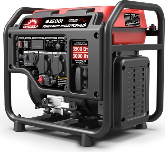 Генератор бензиновый инверторный SUNREKA G3500i (211015). Двигатель генератора SUNREKA G3500i рабочим объемом 145 см3 запускается ручным стартером быстро и легко, а рычаг управления воздушной заслонкой на передней панели позволяет контролировать запуск и прогрев двигателя при низких температурах. Генератор оснащен всеми необходимыми функциями безопасности, такие как защита от короткого замыкания, перегрузки, перепадов напряжения и никого уровня масла, что обеспечивает безопасную эксплуатацию. С помощью параллельного подключения второго инверторного генератора SUNREKA можно увеличить выходную мощность электрической сети. Высокоэффективный бесщеточный многополюсный альтернатор с медной обмоткой. Функция экономии топлива на режимах частичных нагрузок.