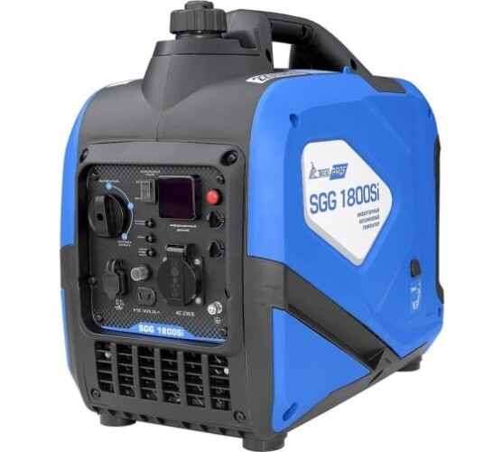 Бензогенератор инверторный SGG 1800Si в шумопоглощающем кожухе предназначен для подключения к нему потребителей тока общей максимальной мощностью до 2,0 кВт. Переносной компактный инверторный генератор предназначен для питания маломощных электроприборов на загородном участке, в походе, на рыбалке. Благодаря использованию в этой модели инверторного преобразователя, на выходе получается стабильный ток, без каких-либо скачков, генератор способен регулировать работу двигателя в зависимости от нагрузки: к примеру, если нагрузка составляет половину от выходной мощности, то и мощность двигателя снижается вдвое; это дает значительную экономию топлива. Инверторные модели получаются более легкими и компактными, чем традиционные генераторы. Благодаря двигателю, специально разработанному под инверторный генератор и особенной конструкции корпуса, удалось значительно понизить уровень шума. Режим ECO обеспечивает экономичный расход топлива, синхронный альтернатор с медными обмотками ротора и статора увеличивает ресурс двигателя. Выход 12 вольт позволяет подзарядить автомобильный аккумулятор в экстренном случае. Инверторный генератор считается оптимальным выбором для нагрузки, чувствительной к качеству тока — такой, как аудиотехника или телевизор.