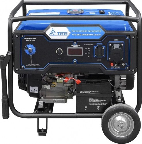 Бензогенератор может применяться на даче, в гараже, строительстве, для уличной торговли или летнего кафе, а также, при выездах в автопутешествия с палатками или на рыбалку. Бензиновая электростанция с номинальной мощностью 6.0 кВт не только отлично справится с созданием резервного электропитания в случаях отключения электроэнергии, но и гарантирует стабильную работу в качестве главного источника питания. Совершенно незаменим для множества ситуаций, где требуется недорогой, мобильный, неприхотливый и простой в эксплуатации источник независимого электроснабжения. Генератор оборудован системами защиты от поломок, чтобы предотвратить возможные сбои в работе и обеспечить его продолжительную и безопасную эксплуатацию. В случае низкого уровня масла его работа автоматически останавливается. Бензогенератор имеет аварийную защиту, которая срабатывает при перегрузке или коротком замыкании, предотвращая неисправности. Бензогенератор с электростартером и с разъемом для подключения блока автоматики. TSS SGG 6000ENA Duplex при номинальной мощности равной 6,0 кВт, обеспечивает кратковременную пусковую мощность до 12 кВт. Генератор DUPLEX вытягивает самых тяжелых индуктивных потребителей, это его отличительная особенность. предназначен для выработки электроэнергии с основными характеристиками: напряжение - 220 вольт, частота 50 Гц и номинальной мощностью 6 кВт.