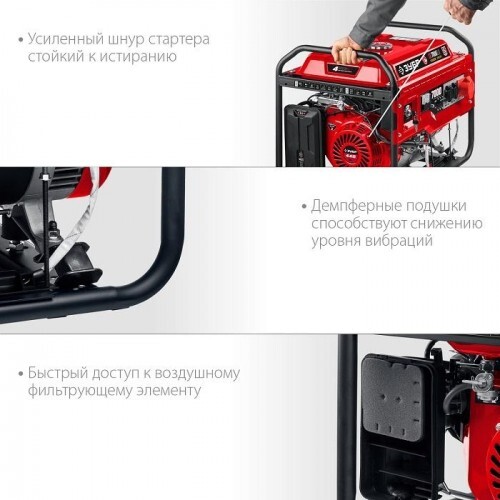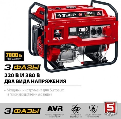 Мощный генератор рассчитанный на одновременное подключение 3-х мощных потребетелей. Вырабатываемой энергии достаточно для обеспечения строительной площадки. Экологичный, экономичный четырехтактный двигатель с пониженным шумом и повышенным ресурсом. Два вида вырабатываемого напряжения - 220В 50Гц и 380В 50Гц.