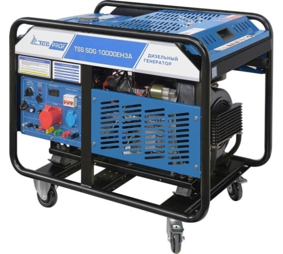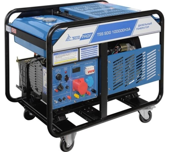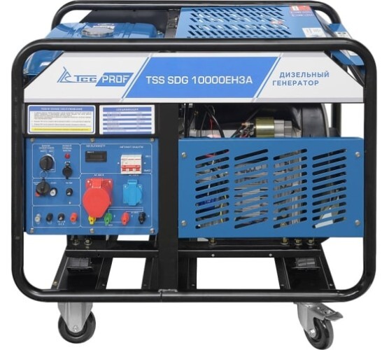 Дизель генератор TSS SDG 10000EH3А с надежным и экономичным двигателем, электростартером и разъемом для подключения блока АВР. Для удобства передвижения оснащенный колесным комплектом.