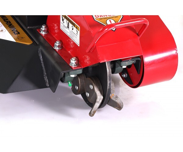 Способен удалять пни любого диаметра. Восемь закаленных вольфрамовых ножей измельчителя качественно перемалывают остатки деревьев любой породы. Глубина работы инструмента составляет 330 мм, высота – 560 мм. Рукоятка оператора для его удобства регулируется по высоте. Для возможности перемещения установки по участку в конструкции предусмотрены большие колеса и транспортировочная ручка. Большая мощность мотора гарантирует высокую производительность оборудования. Центробежная муфта сцепления облегчает управление измельчителем и предохраняет двигатель от незапланированной остановки или повреждения. Барабанные тормоза, включенные в конструкцию инструмента, характеризуются увеличенным ресурсом работы, простотой технического обслуживания. Усиленная конструкция рамы измельчителя пней, надежные приводные ремни создают надежную конструкцию, а сравнительно небольшие габариты делают его маневренным и удобным в эксплуатации.