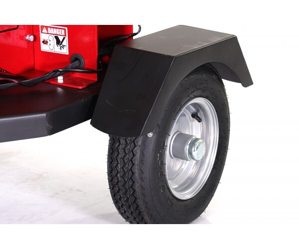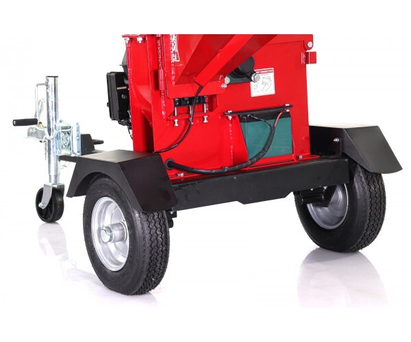 Высокопроизводительный измельчитель дискового типа для древесного материала диаметром до 120 мм. Предназначен для утилизации ветвей лиственных и хвойных деревьев, стволов, кустов, коры и любых надземных частей растений и для производства щепы. Механизм оборудован двумя валиками для подачи материала с гидравлическим приводом. Заводится как с механического так электрического стартера. Для безопасности на вводной трубе установлена скоба с концевым выключателем. При нажатии на неё останавливается двигатель и весь агрегат. Измельчитель установлен на колёсное шасси. Передвигать агрегат можно как вручную, так и буксировать любым транспортным средством оснащенным фаркопом на скорости не выше 30 км/ч для чего предусмотрено стандартное сцепное устройство на фаркоп с страховочной цепью и ведомое колесо.