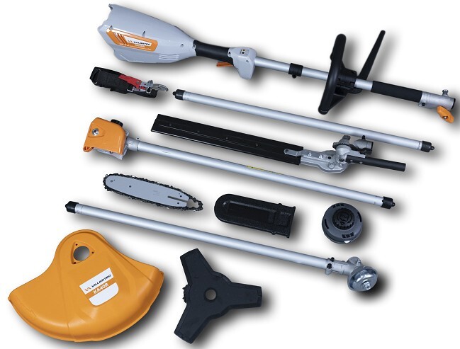 Аккумуляторный комбимотор VILLARTEC KA40R подходит для установки различных насадок - цепной пилы на штанге, триммера, кромкореза, садовых ножниц. Удобный механизм позволяет надежно и быстро фиксировать различные насадки. J-образная рукоятка дает возможность работать не только с триммерным кордом, но и металлическими ножами для удаления густой поросли.