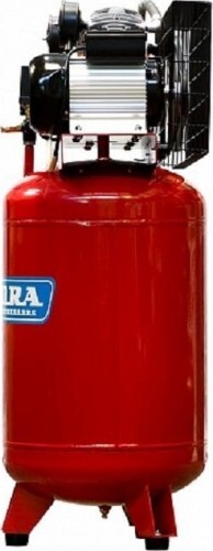V-образный 2-х цилиндровый двигатель и ременной привод для более эффективной работы с большими нагрузками. Компрессор отличается простотой и надёжностью конструкции, высокой ремонтопригодностью и оптимальным соотношением цены и качества. Компрессоры с ременным приводом, по сравнению с коаксиальными коллегами, имеют гораздо больший моторесурс. Так же, за счёт применения ременной передачи, удаётся значительно снизить уровень шума. Данная модель имеет вертикальное расположение ресивера. Это значительно экономит место.