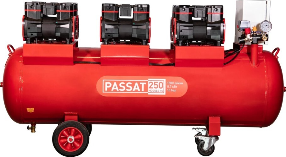 PASSAT – это серия поршневых безмасляных компрессоров, отличающихся низким уровнем шума и высокой производительностью. Трёхфазные компрессоры MODULE предназначены для работы в сетях с напряжением 400В и позволяют запускать компрессорные головы как одновременно, так и по отдельности, что обеспечивает гибкость в достижении требуемых параметров производительности.