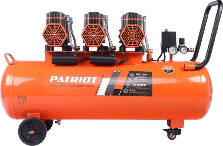 Поршневой безмасляный компрессор PATRIOT KDS 580 F100 (100 литров) для работы с пневмоинструментом. Безмасляный компрессор не требует установки маслоотделителей, подойдет для краскопульта и аэрографа. Подходит для использования в гараже, мастерской, во время ремонта или строительства.