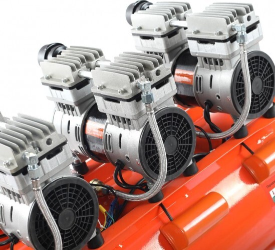 Безмасляный поршневой компрессор применяется для обеспечения сжатым чистым воздухом пневмоинструмента.