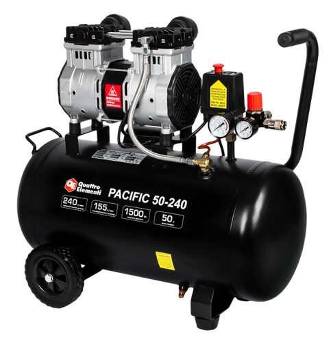 Поршневой безмасляный компрессор QUATTRO ELEMENTI PACIFIC-50 919-761 представляет собой надежный силовой агрегат для выработки сжатого воздуха и обеспечения им пневмооборудования и инструментов. Техника имеет прочный алюминиевый корпус, в комплекте есть транспортировочные колеса для удобства перемещения по рабочей площадке.