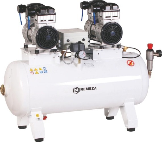 Малошумный поршневой безмасляный компрессор с компрессорным узлом TWIN Cylinder. Тандем.