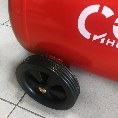 Компактный компрессор легко перемещается за счет небольших габаритов и веса. Для облегчения транспортировки внутри и снаружи помещений снабжён колёсами и дополнительной ручкой на корпусе.