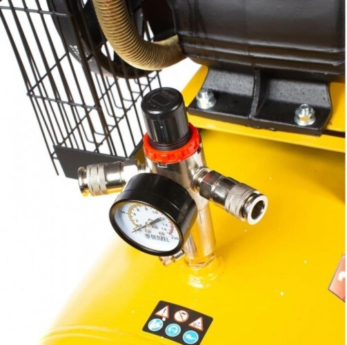 Компрессор Denzel BCV2300/100 способен производить 440 литров сжатого воздуха в минуту. К нему могут подключаться сразу 2 пневмоинструмента, например, продувочный пистолет и плазморез. Высокие показатели производительности позволяют использовать данный компрессор в подсобных хозяйствах, гаражах, на станциях техобслуживания автомобилей, мебельных фабриках и т.д.