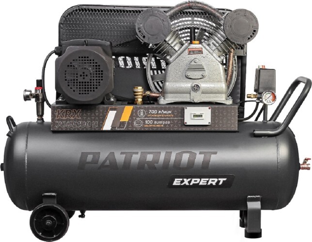 Производительности 700 л/мин (42 м3/ч) достаточно для пескоструйных, монтажных и строительных работ. Быстросъемный штуцер (¼"""") и кран с вентилем для подключения пневмоинструмента. Объем ресивера — 100 л.
