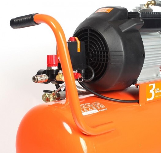 Конструкция компрессора включает прочный 50-литровый ресивер и эффективные системы охлаждения. Мощный двигатель подходит для работы с различным электроинструментом (пневматические гайковерты, шлифмашины, краскопульты), автомобильные работы (сборка, подкачка шин), а также покраски.