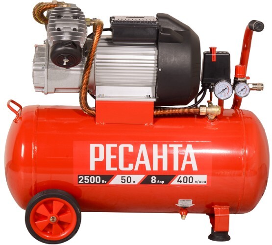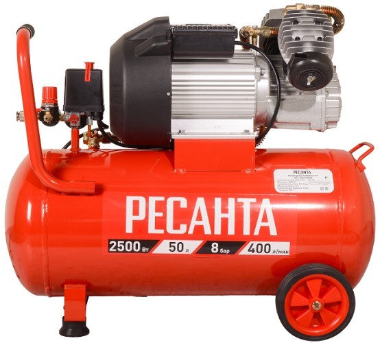 Компрессор Ресанта КП-50/400М используется для нагнетания сжатого воздуха в различное пневмооборудование в ходе строительно-ремонтных работ.
