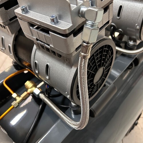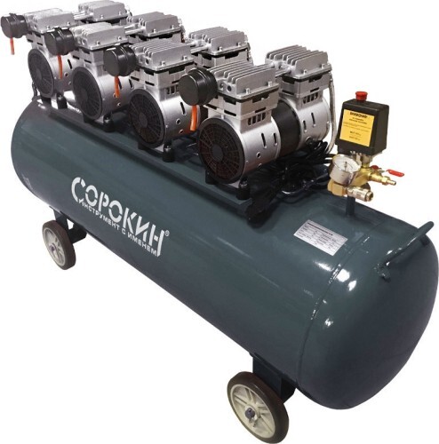 Малошумный компрессор оборудован безмасляной головкой, что обеспечивает получение чистого сжатого воздуха без примесей масла.