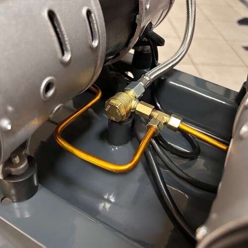 Для облегчения транспортировки внутри и снаружи помещений компрессор оснащён колёсами и двумя ручками на корпусе.