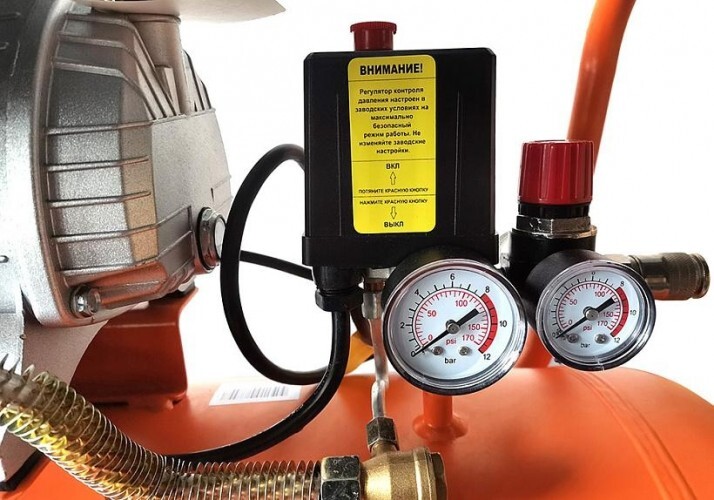 Воздушный компрессор масляный СОЮЗ ВКС-93210С. Высоко-производительный компрессор c 2-х цилиндровым мотором V-TYPE с большим ресивером позволяет выполнять большой объем работ. Быстросъемные соединители RAPID позволяют подключать одновременно 2-х потребителей, легко и быстро менять пневмо оснастку. Защита от перегрева и защита от перегрузки предохраняют компрессор от критических состояний. Порошковая покраска ресивера - высокая антикоррозийная стойкость, стойкость к перепадам температуры, механическим воздействиям, ультрафиалету (почти не выцветает), декоративность. Реле и регулятор давления на входе и выходе с манометрами позволяют создавать давление максимально приближенное к требуемому потребителем, а также наглядно наблюдать и контролировать возможные перепады или недостатки компрессии.