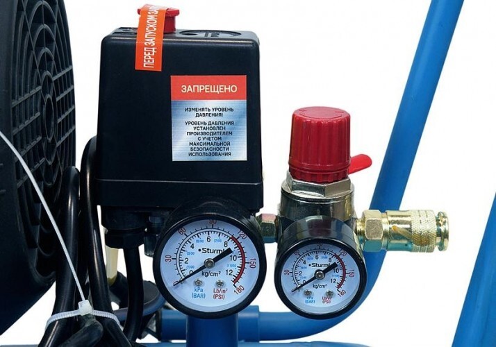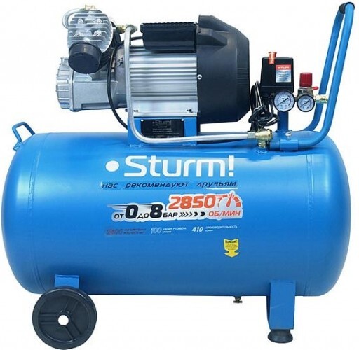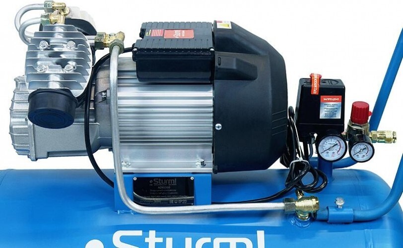 Воздушный компрессор Sturm AC932100 — эффективность и скорость работы компрессора увеличена за счет использования 2-х цилиндров.