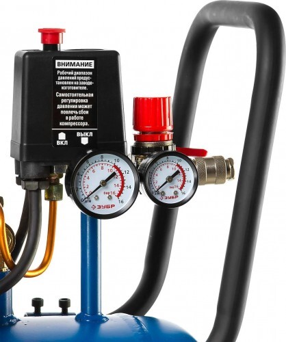 Контроль давления в ресивере и на выходе при помощи двух манометров