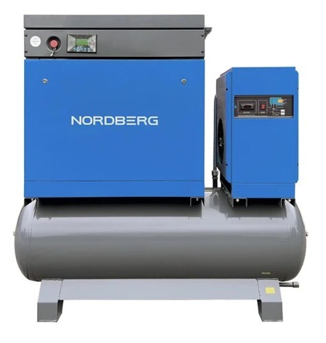Компрессор винтовой, 11 кВт, 10 бар, 1550 л/мин, ресивер 410 л, IP23, осушитель NORDBERG NCB15RD – промышленное оборудование для применения с пневмоинструментами в автосервисных мастерских и СТО.