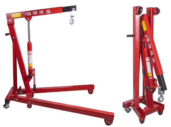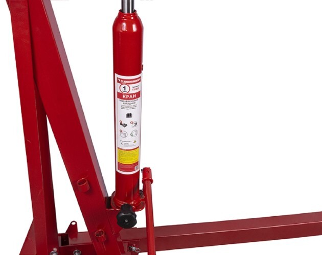 Гидравлический гаражный кран максимальная грузоподъемность 1 т, может широко применяться для работы с различными массивными деталями и конструкциями. Особенно полезным данное устройство будет в автомастерской, где позволит сэкономить значительные силы и время. Незаменимо при снятии двигателя легкового автомобиля.
