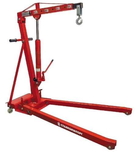 Гидравлический гаражный кран максимальная грузоподъемность 2 т, может широко применяться для работы с различными массивными деталями и конструкциями. Особенно полезным данное устройство будет в автомастерской, где позволит сэкономить значительные силы и время. Незаменимо при снятии двигателя легкового автомобиля.
