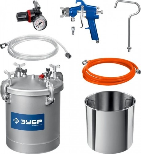 Красконагнетательный бак с краскораспылителем ЗУБР 06464 предназначен для окраски больших по площади поверхностей. Наличие большого количества регулировок позволяет работать с различными ЛКМ.
